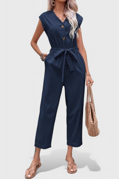 Ariane Mono de Pierna Ancha con Escote en V y Cintura con Lazo