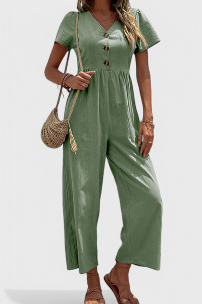 Isaura Mono Largo Elegante con Pierna Ancha y Escote en V