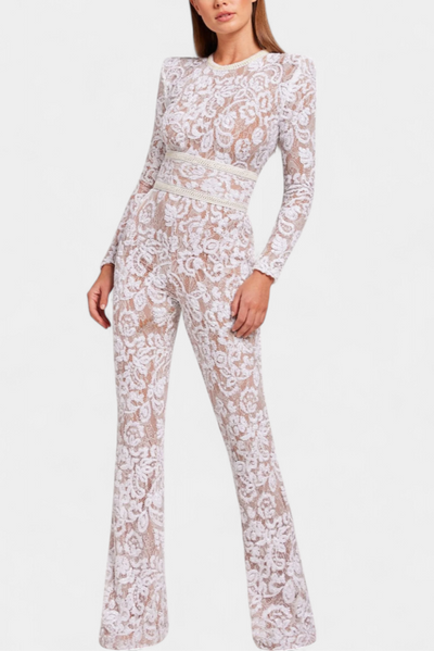 Jimena Mono de Encaje con Lentejuelas y Cinturón